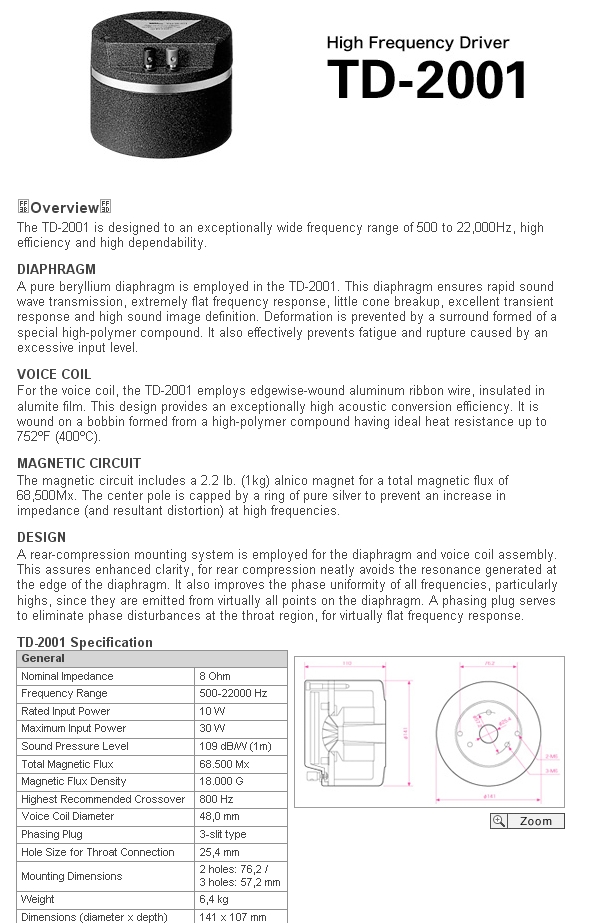 Click on the Compression driver to see the TAD data sheet on this fantastic driver.